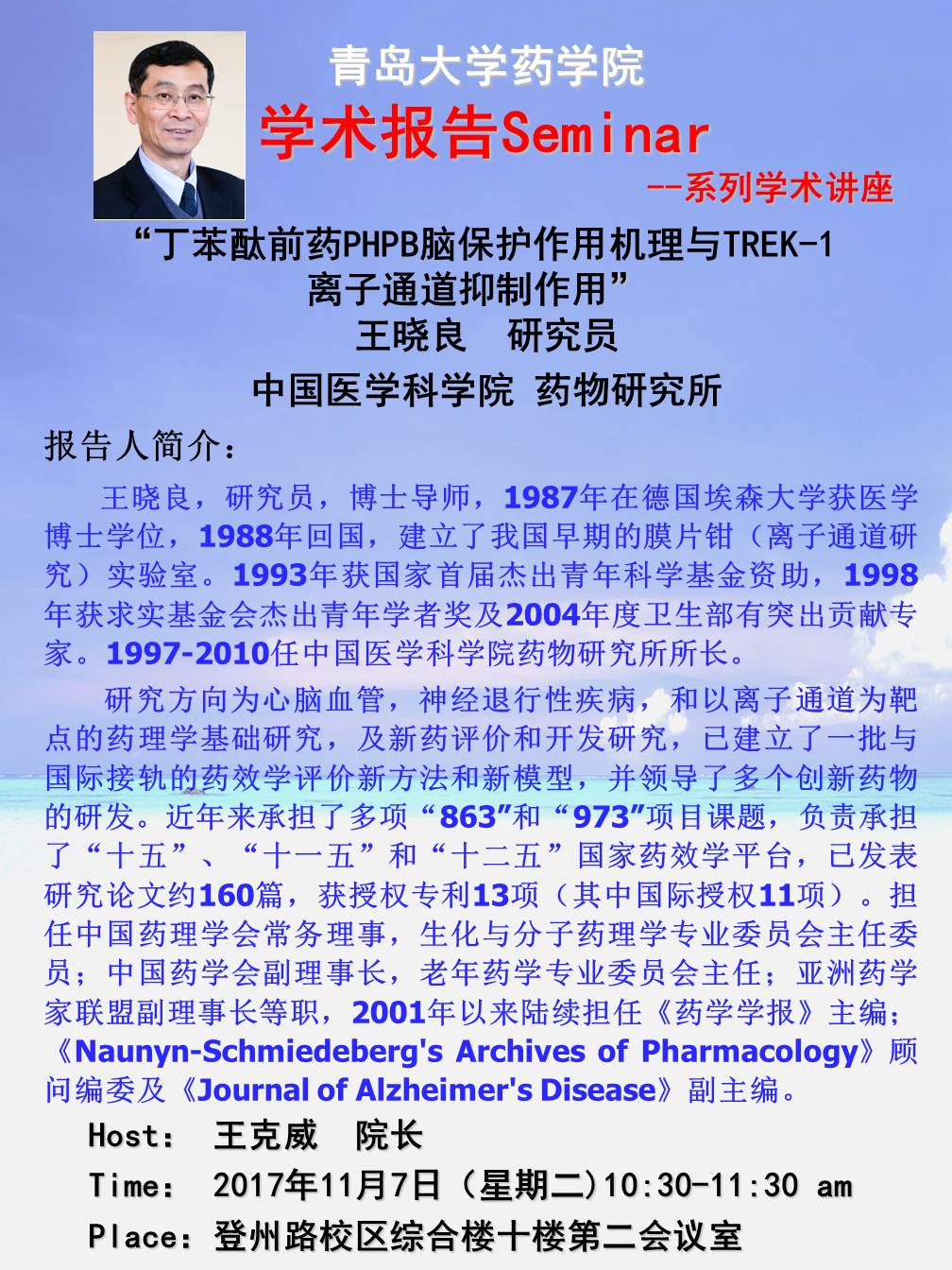 上一条:11月7日中国医学科学院药物研究所王晓良研究员来黑料正能量 学术交流 下一条:美国范德堡大学白明峰博士来黑料正能量 进行学术讲座