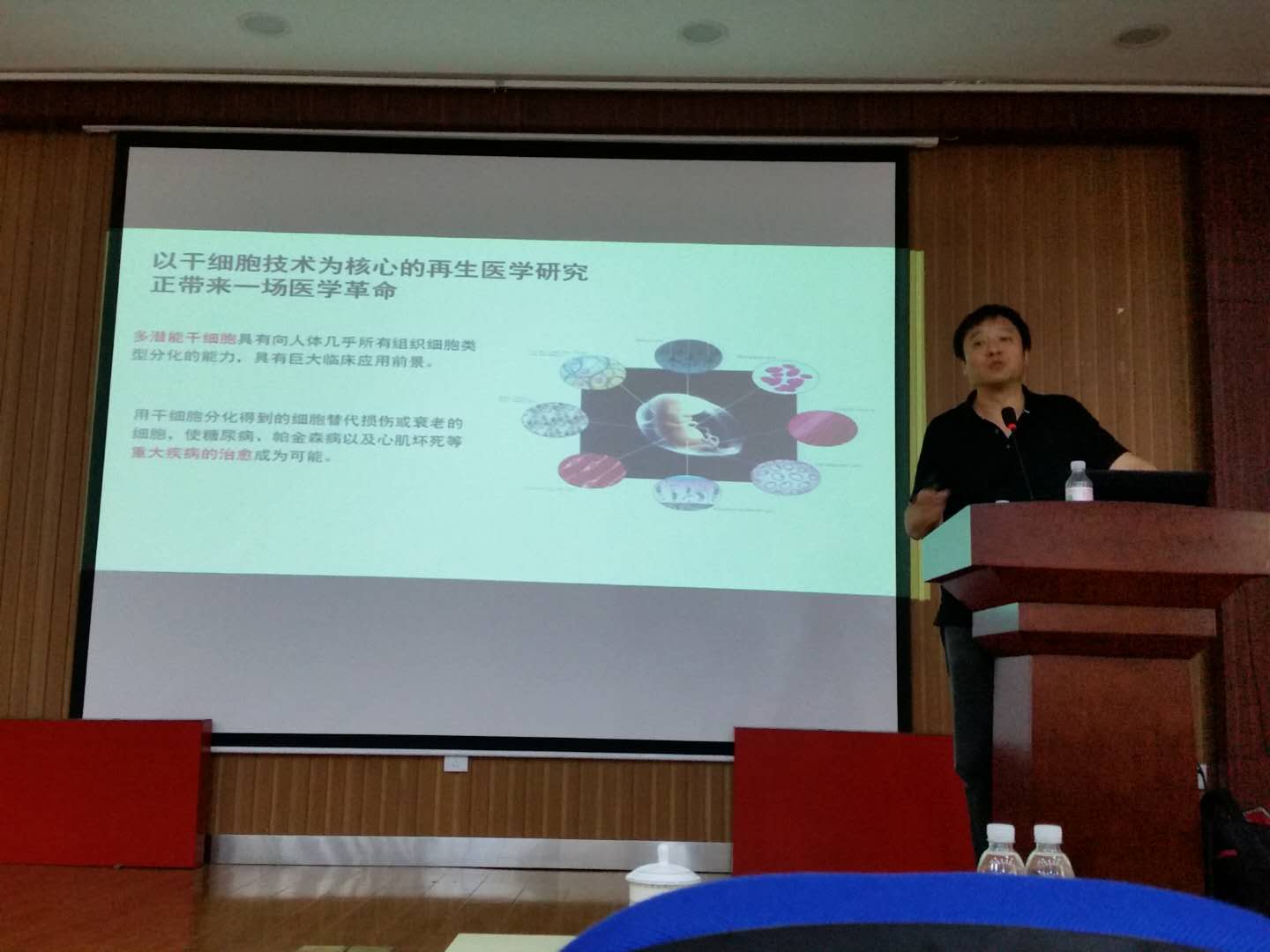 邓教授作了题为“化学小分子操控与重塑“的学术报告,主要介绍了干细胞研究中利用化学小分子诱导细胞命运转变的一系列开创性研究。他们利用化学小分子建立了一种全新的具有全能性特征的干细胞,首次实现完全使用小分子化合物逆转“发育时钟”,让小鼠体细胞重新获得多潜能性;建立了一套更高效的利用小分子化合物诱导化学多潜能干细胞的方案,揭示了化学重编程不同于传统重编程的分子机制;介绍了EPS技术在实验研究及临床研究中的应用潜力和前景。在报告过程中,对科学研究过程中细节的观察和试验意外发现等科研思维和方法也进行了讲述。