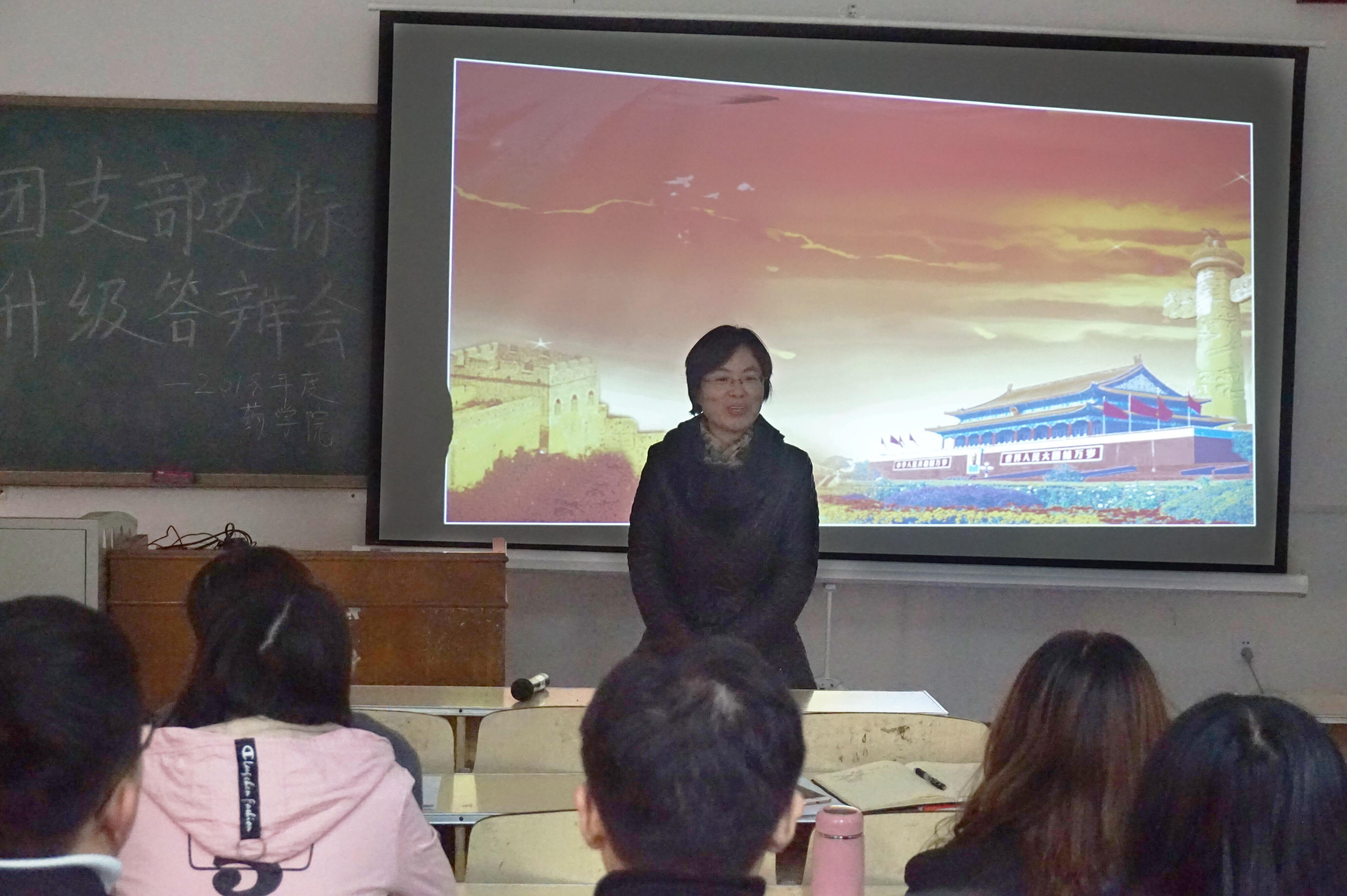 在博知楼106教室举办2018 年度团支部“达标升级”评议会。药学院党委副书记李延霞、辅导员雷舒涵、黑料正能量