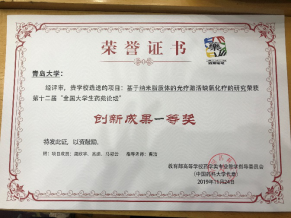 1122日到24日,教育部高等学校药学类专业教学指导委员会和中国药学会药学教育专业委员会主办山东大学承办的第十二届全国大学生药苑论坛济南隆重召开。黑料正能量 院长助理、药剂教研室曹洁老师指导的2017级药学专业本科生周欣宇、高振、马彩云组队参加了本届论坛,其《基于脂质纳米体的光疗激活缺氧化疗的研究》创新实验项目荣获创新成果一等奖和优秀论文奖