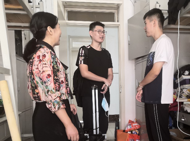 学院高度重视郁一帆退伍返校工作,提前帮助学生联系落实复学各项手续,提前安排好宿舍,热情欢迎学子归来。李在宝、李延霞与郁一帆及家人亲切交谈,表示学院将全力为学生全面成长成才创造条件、做好服务,请家长放心,希望郁一帆发扬在部队锤炼出的过硬作风,快速融入校园生活,发挥军训教官作用,带好新生队伍,成为朋辈教育和校园爱国主义教育的一面旗帜。孙渝淞代表学生会对郁一帆的归来表示了热烈的欢迎和关心,表示将全力帮助他重新适应校园生活,解决生活中遇到的问题。郁一帆表示一定好好学习、好好带训,请领导和同学们放心。李延霞带领学生干部一起将郁一帆送到宿舍。