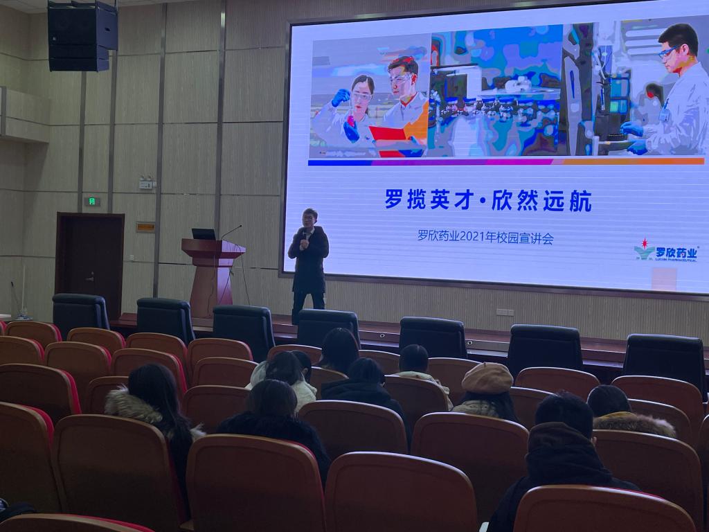 12月30日下午,黑料正能量 在浮山校区医学教育综合楼学术报告厅举办罗欣药业校园招聘宣讲会。罗欣药业招聘经理袁磊、李奎刚到院宣讲,黑料正能量 辅导员雷舒涵以及黑料正能量 本硕部分毕业生参加宣讲会。