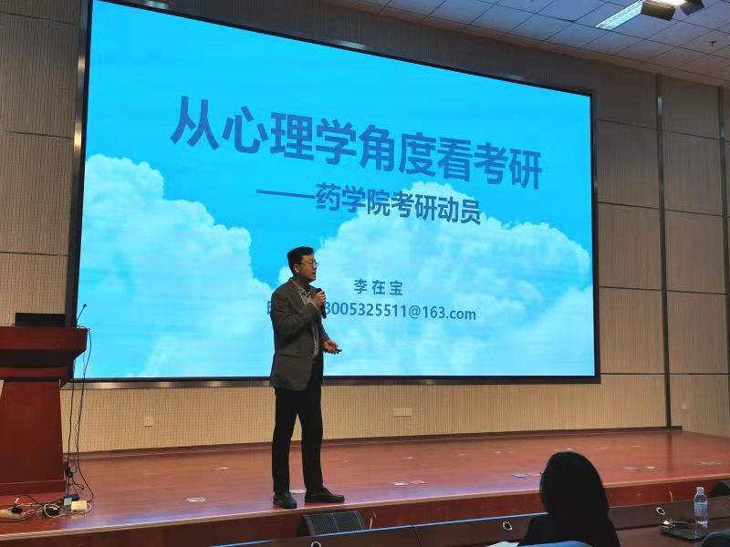 李在宝作了题为《从心理学看考研》的专题报告。他从“真实的考研率到底是多少?考研难吗”“一定要参加考研辅导班吗”“考研计划怎么安排比较合适”“考研怎么报考?一定要联系导师吗”“我平时学习不好,能考上吗”等五个学生比较关心的问题入手,用大量事例和幽默睿智的语言娓娓道来,让与会同学深切体会“考研其实没那么难”“没信心无规划管不住自己是症结”。最后,李在宝指出,充满自信,严格自律,每个人都能迈向成功,衷心祝愿同学们心想事成。