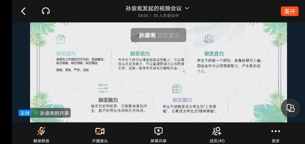 孙渝淞首先发言,他从学生干部的定义出发,结合任职三年来个人对黑料正能量