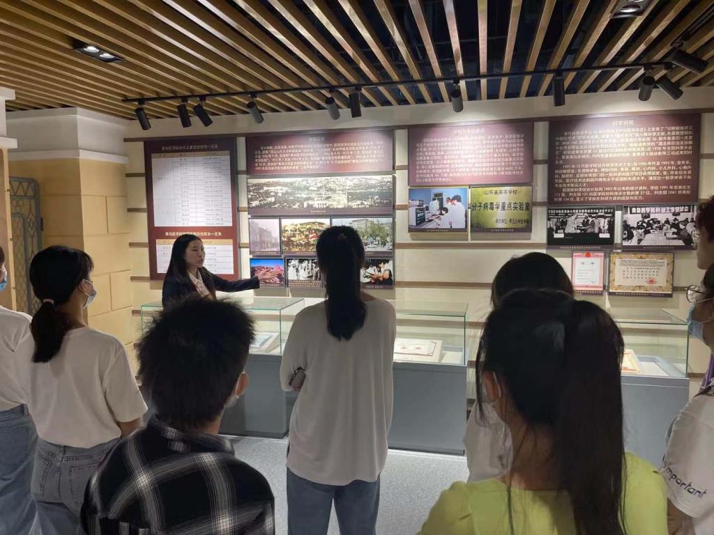 2021级新生全面地介绍了学校的发展。同学们轻步慢行,认真倾听,通过浮雕、多媒体、珍贵的历史图片和实物等,全面了解我校的办学历史、办学理念、办学成就和文化传承。在讲解员的带领下,同学们重点参观了医学发展史馆,通过参观序厅、青医之魂、名师云集、发展历程、知名校友和再铸辉煌六个板块,同学们对青大医学部的发展历程有了全面系统的了解。面对徐佐夏、魏一斋、潘作新、沈福彭等一大批德医双馨的医学专家、教育名师,同学们肃然起敬,深切感受大师云集、校友璀璨,倍感振奋,备受鼓舞。