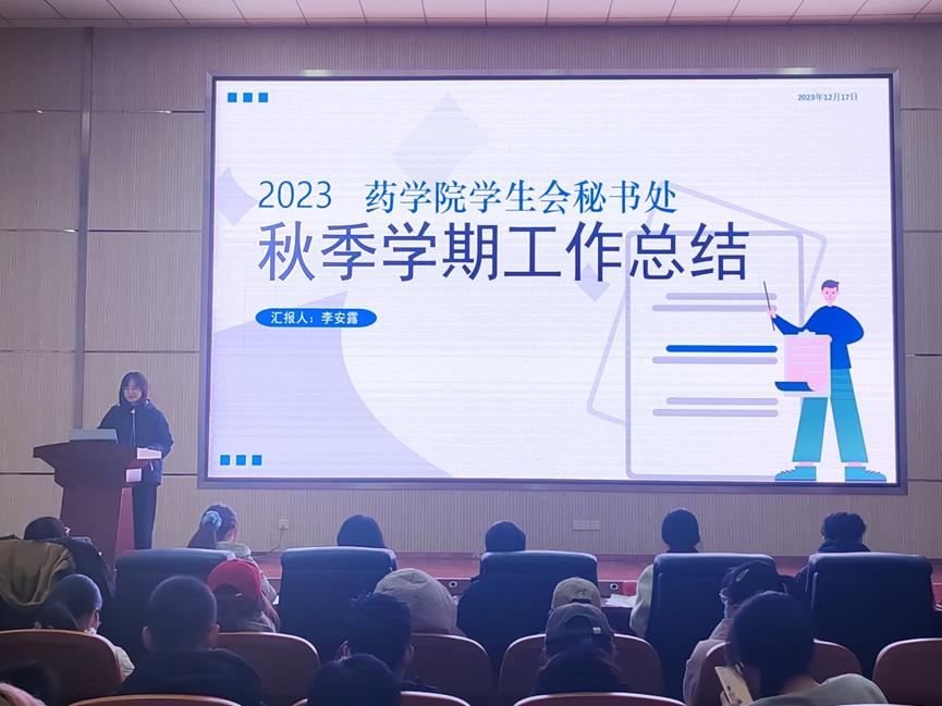 于浩园医学教育综合楼学术报告厅举办“2023年学生会述职会暨学期总结会”,学生会指导老师仇启荣、辅导员杨浩,及学生会全体成员参加,本次活动由2023级本科生刘心怡主持。