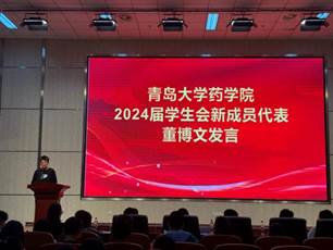 学生会发展联络中心干事董博文同学代表学生会新成员做了表态发言。他提议,作为学院学生会的一份子,应不断完善自我,以德为先,脚踏实地、勇于担当,积极为学院学生会增光添彩。