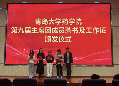 在成立大会环节,第九届学生会轮值主席阚凯文宣读了第九届学生会全体成员名单。杨浩为第九届主席团成员颁发聘书及工作证。相关负责同学也为各部门负责人和干事颁发了聘书和工作证。