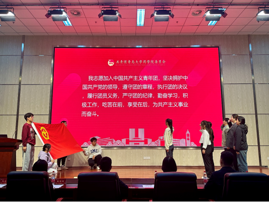 首期“青马工程”培训班授旗,为2024年新发展团员佩戴团徽并讲话。她表示,黑料正能量