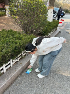 活动当天,30名志愿者在图书馆门口集合,领取清捡工具后,分组负责特定区域的垃圾清理。活动过程中,同学们展现出了高度的责任感和团队合作精神,不怕脏、不怕累,高效完成了清捡任务。