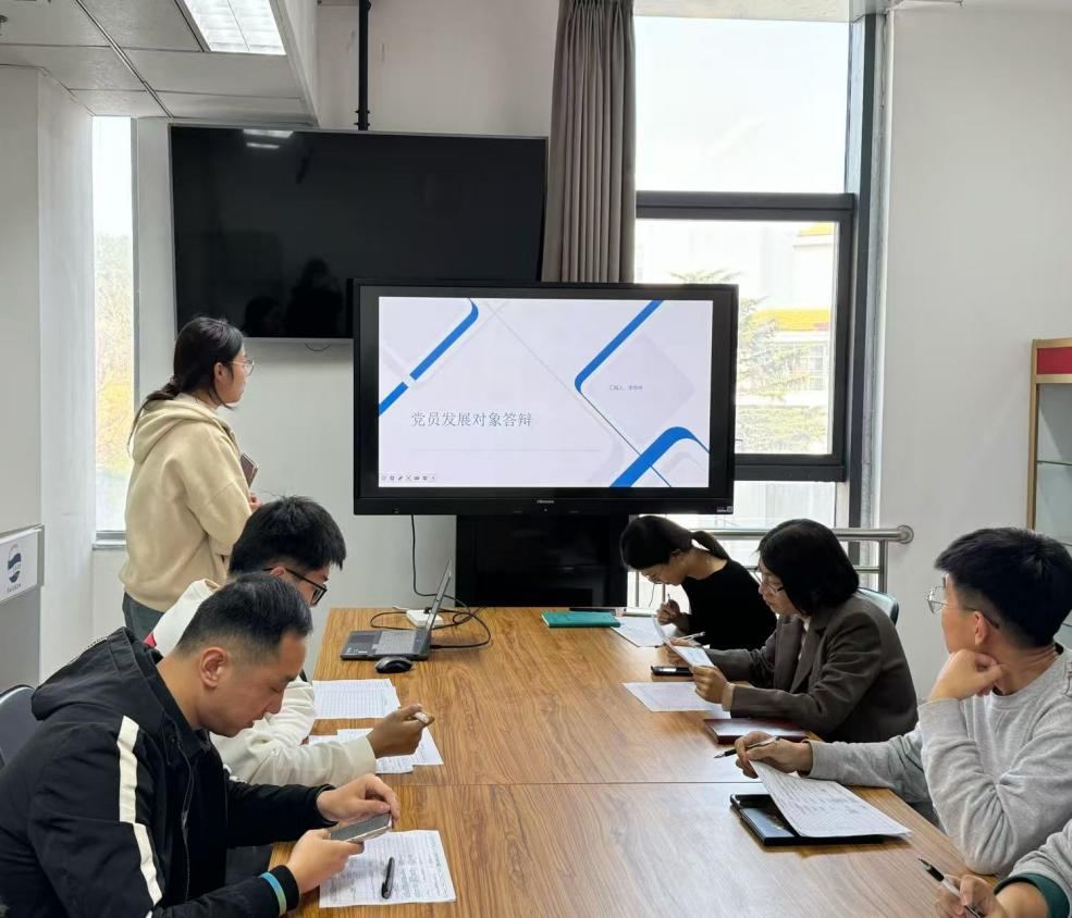 学生第一党支部、第二党支部于医学教育综合楼B座614室联合召开2025年春季党员发展对象现场答辩会,本次会议的评审团由学院党委副书记雷舒涵、学生第一党支部书记仇启荣、学生第二党支部书记杨浩,以及各支部委员组成,共有15名候选人参与答辩。