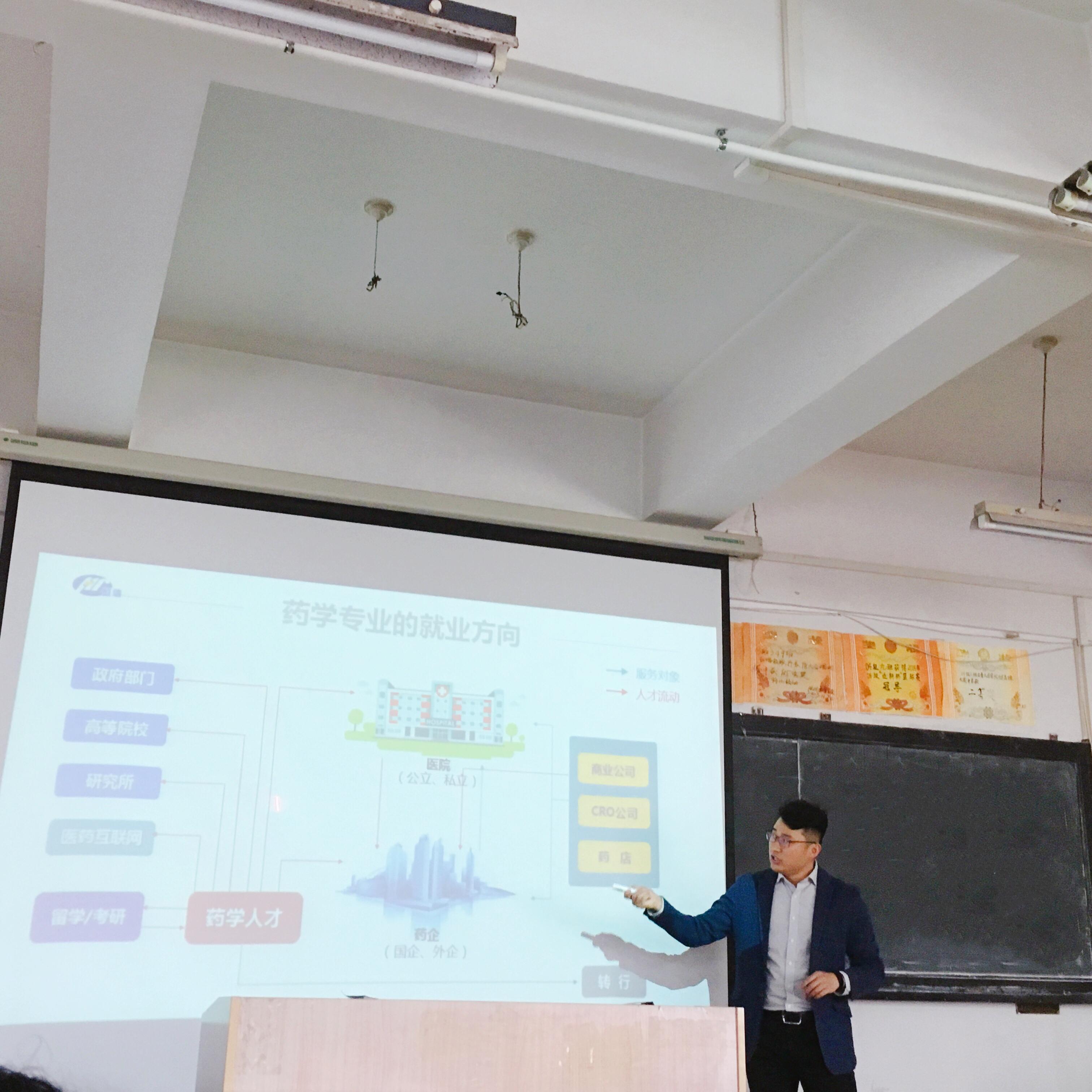 同日,祖楠为2020届药学本科毕业生上就业指导课。祖楠从医药行业概况、药学专业的就业方向和如何做好就业准备三个方向展开了课程,仔细地向同学们讲述了当前医药相关的就业形势、如何清晰地定位自己的方向、怎样准备一份优秀的简历等。祖楠现场邀请同学进行模拟面试,仔细讲解面试中应该注意的问题。同学们积极参与,热情互动。