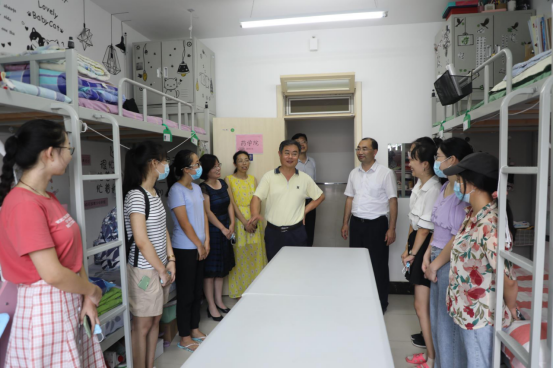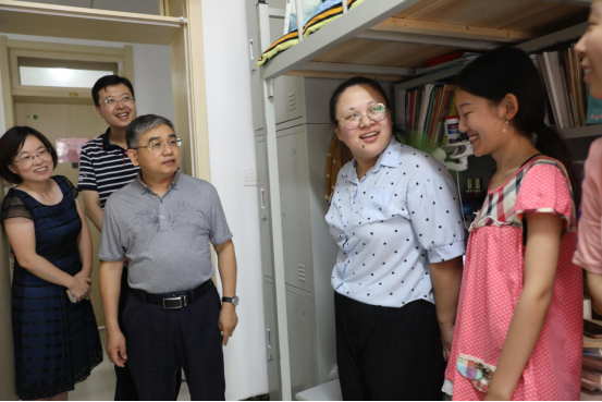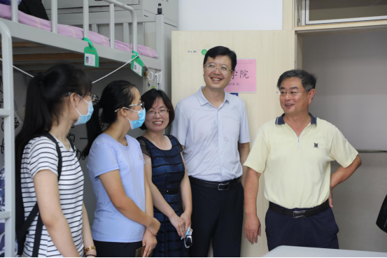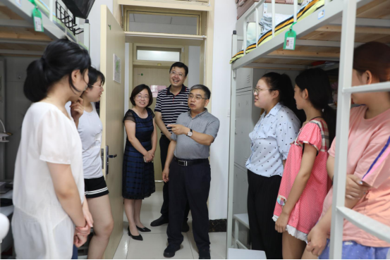 浏园C楼108宿舍看望2019级同学,“同学们都回来了吗?”“对青岛的天气能适应吗?”他亲切的和同学们拉起了家常,详细询问同学们的生源地、居家学习情况和返校后的学习安排、返校后的感受等,提醒同学们注意防暑降温,同时对同学们安静读书的行为高度认可,勉励同学们早做规划,以饱满的热情投入新学期的学习生活中去。