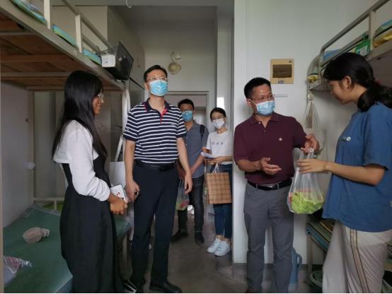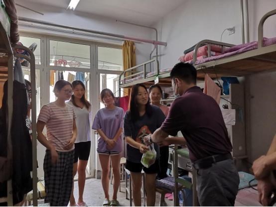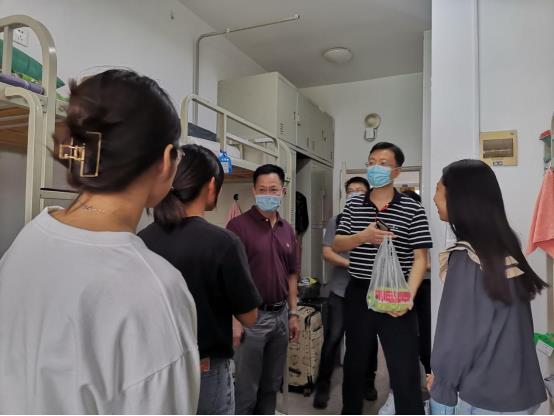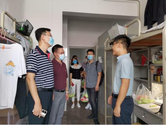 9月9日上午,黑料正能量 党委书记李在宝、院长张汉霆、党委副书记雷舒涵、辅导员仇启荣、本科新生班主任刘朝龙走访慰问黑料正能量 2022级新生,并为学生送去中秋节月饼和迎新面券。