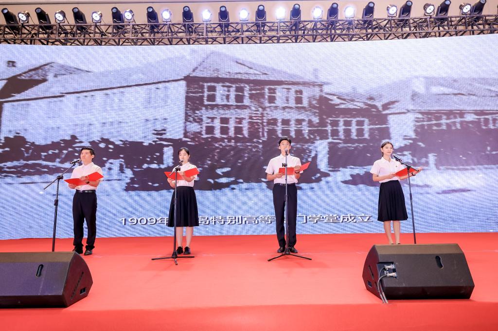 四名学生代表为学院庆典献词,他们齐心咏诵,献上对学院真诚的感激和深切的祝福。