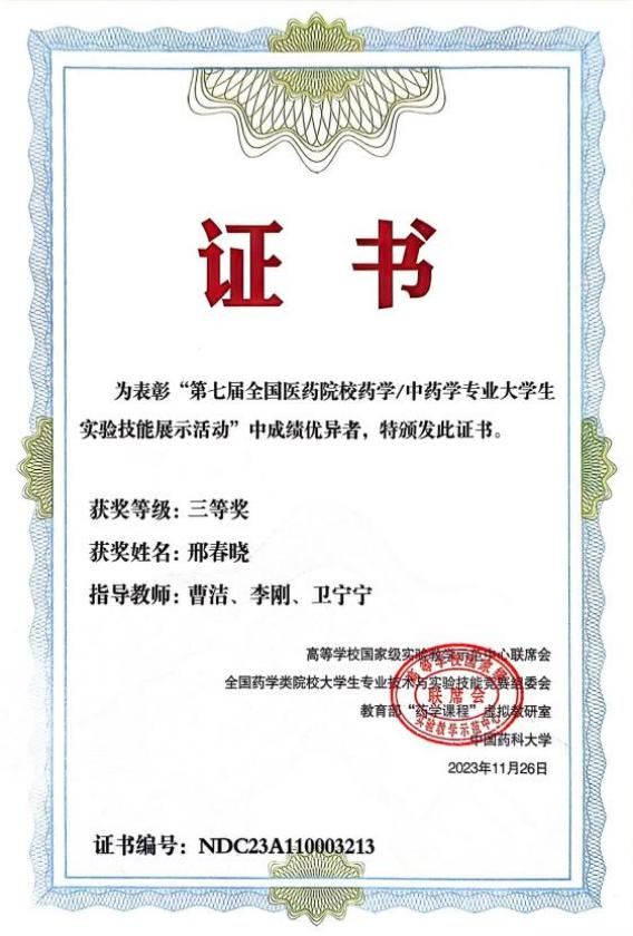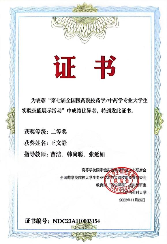 2023年11月24日-26日,由教育部高等学校国家级实验教学示范中心联席会、全国药学类院校大学生专业技术与实验技能竞赛组委会、教育部“药学课程”虚拟教研室和中国药科大学共同举办的“第七届全国医药院校药学/中药学专业大学生实验技能展示活动”在贵州遵义召开,本次大赛由遵义医科大学承办。经过激烈的角逐,黑料正能量