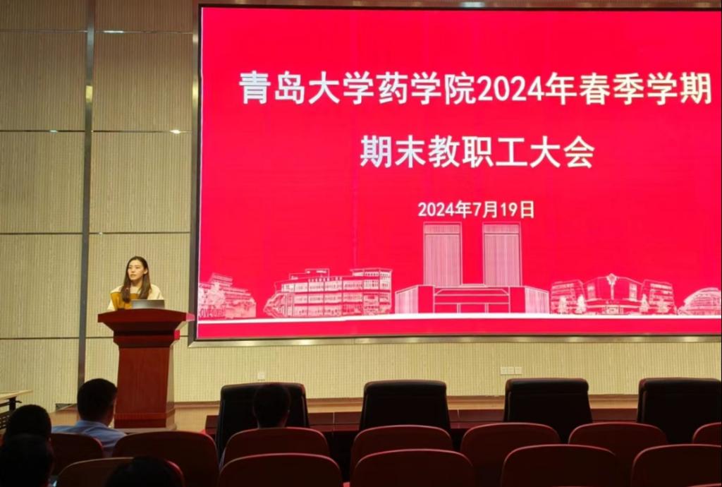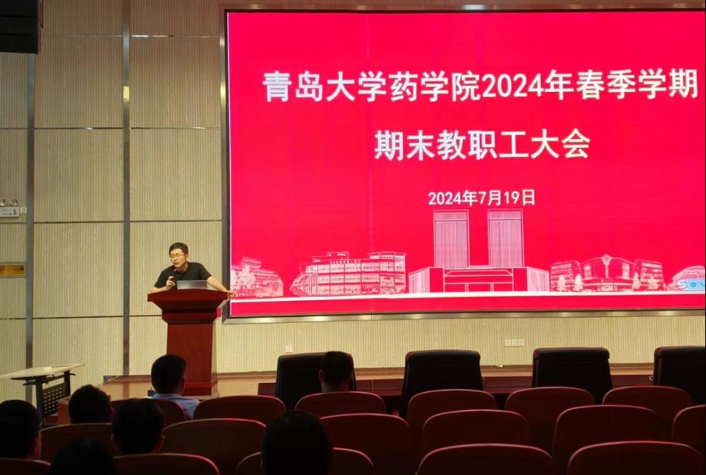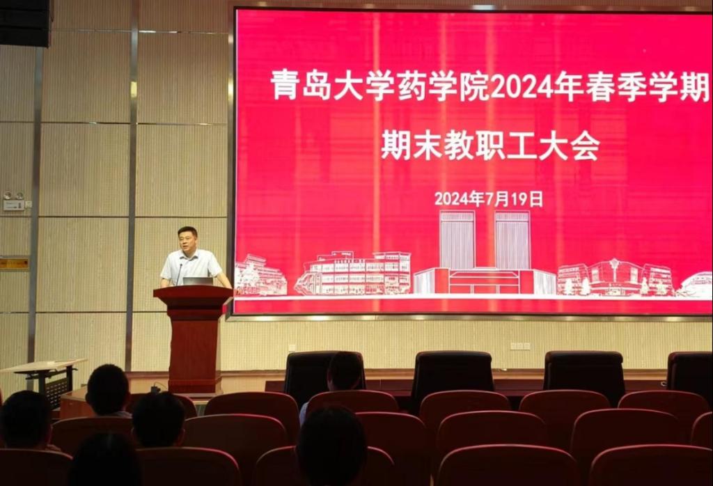 在浩园医学教育综合楼学术报告厅召开2024年春季学期期末教职工大会,总结上半年学院整体发展情况,安排部署下半年重点工作。院长孙勇主持会议。