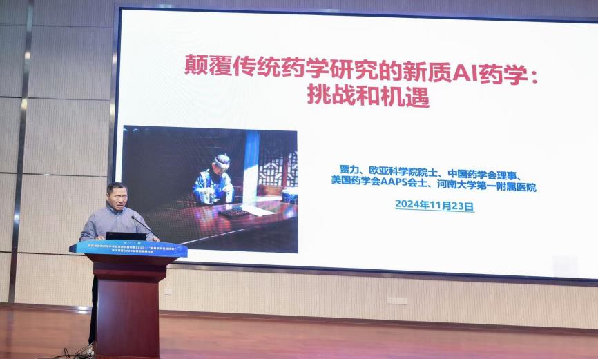 国际欧亚科学院院士(中国中心)、中国药学会理事、美国药学会AAPS会士、中国化学会资深会员贾力教授作了《颠覆传统药学研究的新质AI药学:挑战和机遇》的报告。随着人工智能技术的发展,AI药学为传统药学研究带来了新的变革,贾力教授的报告深入探讨了其中的挑战与机遇。在药物发现阶段,AI可以通过分析大量的生物医学数据来预测药物靶点。在药物设计方面,AI能够根据靶点的结构特征设计小分子药物,大大缩短了药物设计的周期。