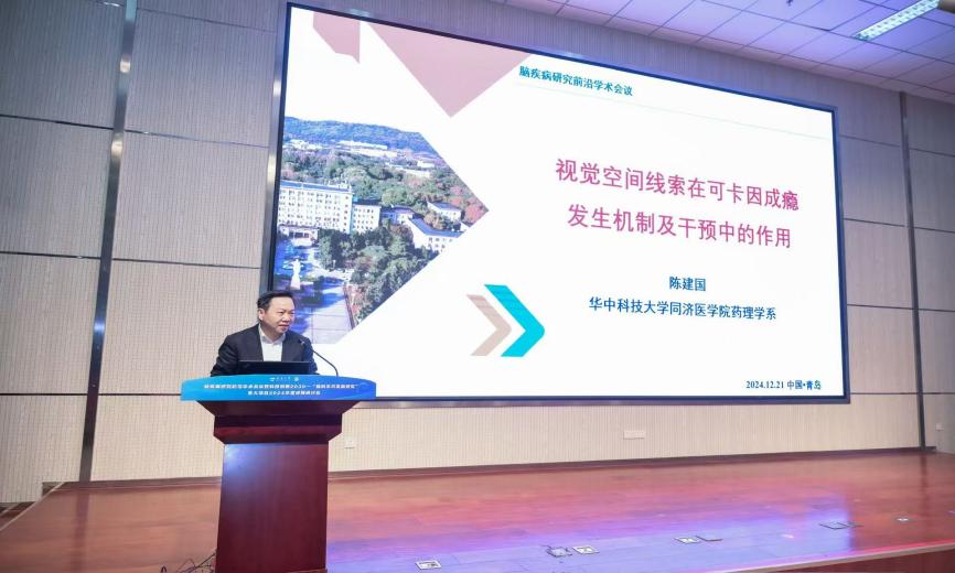 华中科技大学同济医学院药理学系主任、国家杰青、长江学者特聘教授、国家973计划和脑计划项目首席科学家陈建国教授作了《基于视觉线索的可卡因成瘾机制及干预策略研究》的报告。视觉线索在可卡因成瘾过程中起到重要作用,当可卡因成瘾者看到与吸毒相关的视觉线索时,大脑中的特定神经回路会被激活。这些神经回路涉及到大脑的奖赏系统、记忆系统和决策系统等。可卡因成瘾危害巨大,陈建国教授的研究从视觉线索角度入手,为成瘾干预策略提供了新的思路。