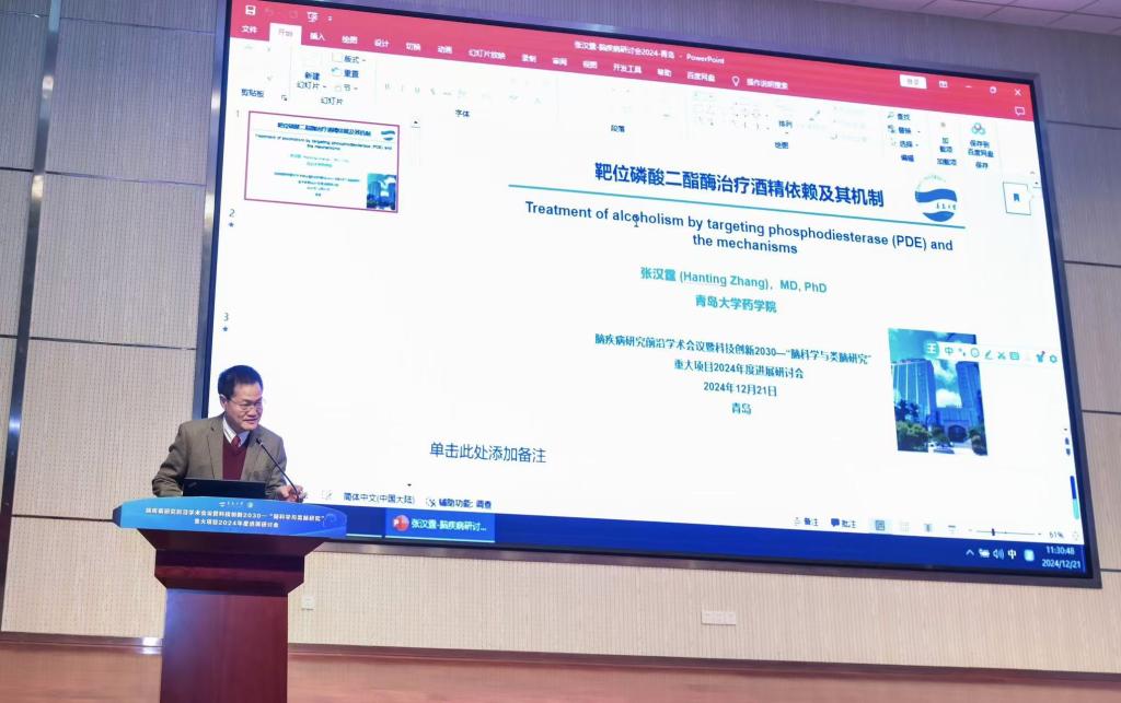 院长张汉霆教授作了《靶位磷酸二酯酶治疗酒精依赖及其机制(Treatment of alcoholism by targeting phosphodiesterase (PDE) and the mechanisms)》的报告。抑制PDE4能够增加细胞内cAMP浓度,从而调节神经递质的释放和神经元的兴奋性,进一步调节纹状体多巴胺D1和D2神经元的平衡。这种调节作用可以影响个体对酒精的渴望和摄取行为,达到治疗酒精依赖的目的。酒精依赖是常见的成瘾问题,通过靶向磷酸二酯酶治疗酒精依赖,为解决这一难题带来了曙光。