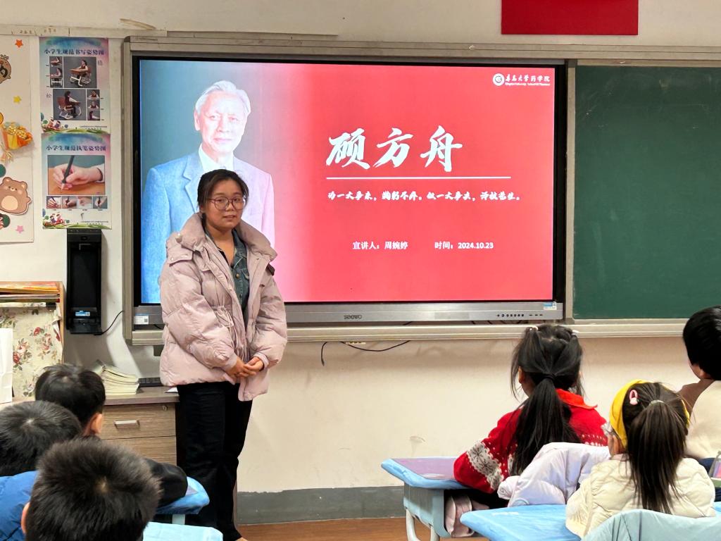党委副书记雷舒涵,辅导员仇启荣、杨浩,药学青年先锋青年宣讲团成员周婉婷、张祎一、何盼一行赴大学路小学,为小学生讲述医药行业杰出人物的先进事迹。