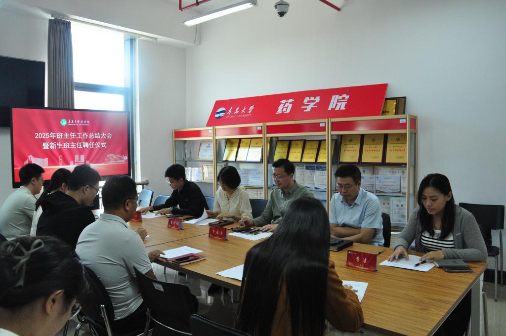 于9月18日召开2025年班主任工作总结大会暨新生班主任聘任仪式。学院党委书记李在宝、院长孙勇、党委副书记雷舒涵、副院长曹洁、辅导员杨浩和班主任代表参会,会议由辅导员仇启荣主持。