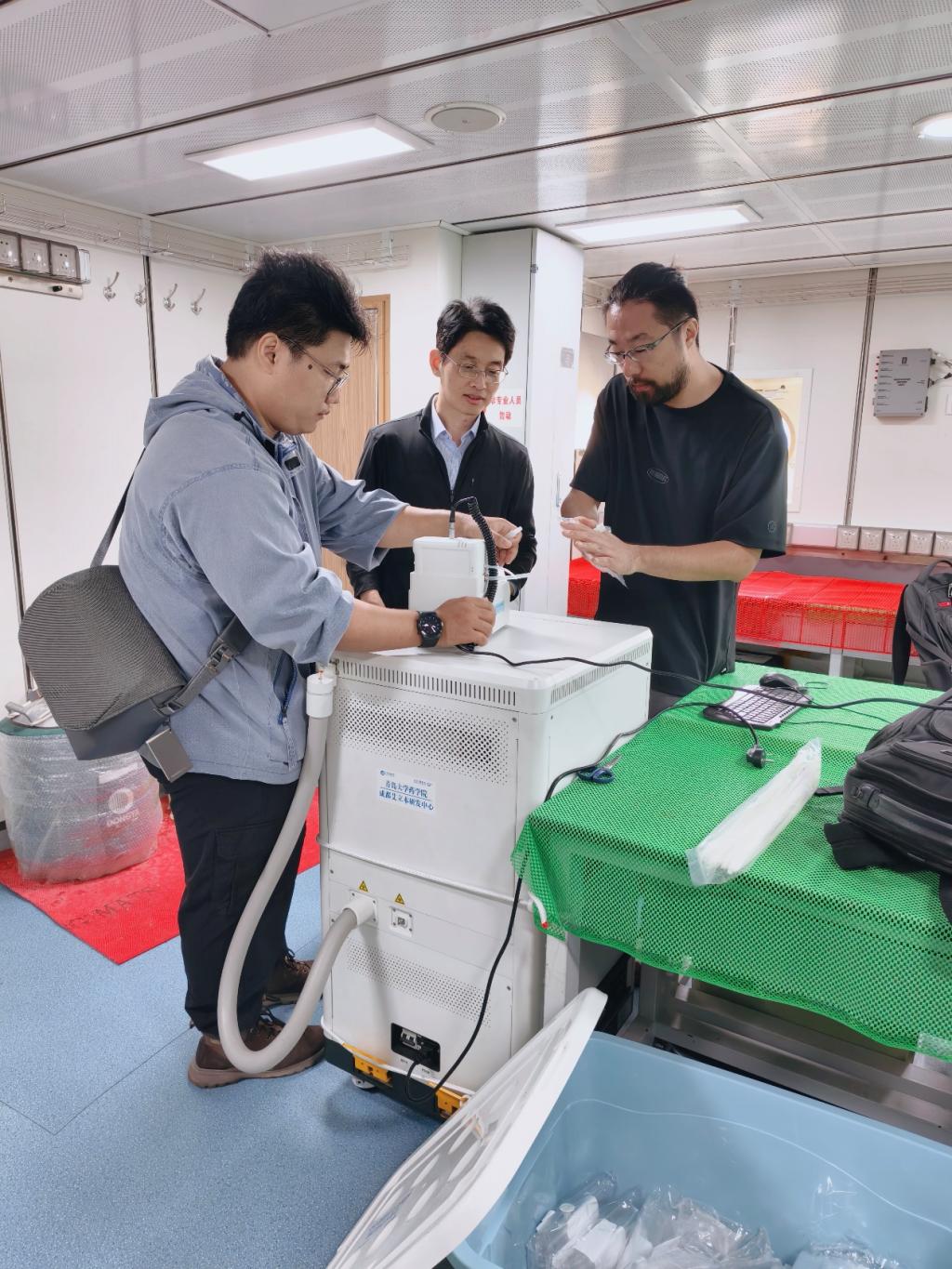 梁帅、丁薛璐团队的特种医学研究项目“面向远洋航海环境的人体呼出气监测系统开发及船员健康风险评估”的随船实时检测设备,随中国海洋大学“东方红3号”科考船共享航次顺利出港,启动为期35天的远洋船员人体呼出气实时监测任务。该项目致力于研发适用于远洋航海环境的无创、实时健康监测系统;通过本次远洋实验,项目团队将收集航海人员的呼出气关键数据,优化健康监测技术,为远洋环境下船员健康管理提供更加可靠的解决方案,为提升航海特种医学技术水平、保障船员健康提供科学支持。