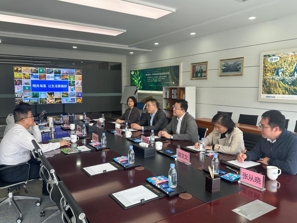 一行来到明月海藻集团,参观了明月海藻科技馆、海洋食品加工与安全控制全国重点实验室,直观地感受到海洋生物产业的发展潜力与技术前沿。随后双方进行座谈,围绕人才培养与科研合作开展对话,最终达成共识:一是共建大学生实习实践基地;二是联合开展企业进校园活动;三是建立科研合作长效机制。