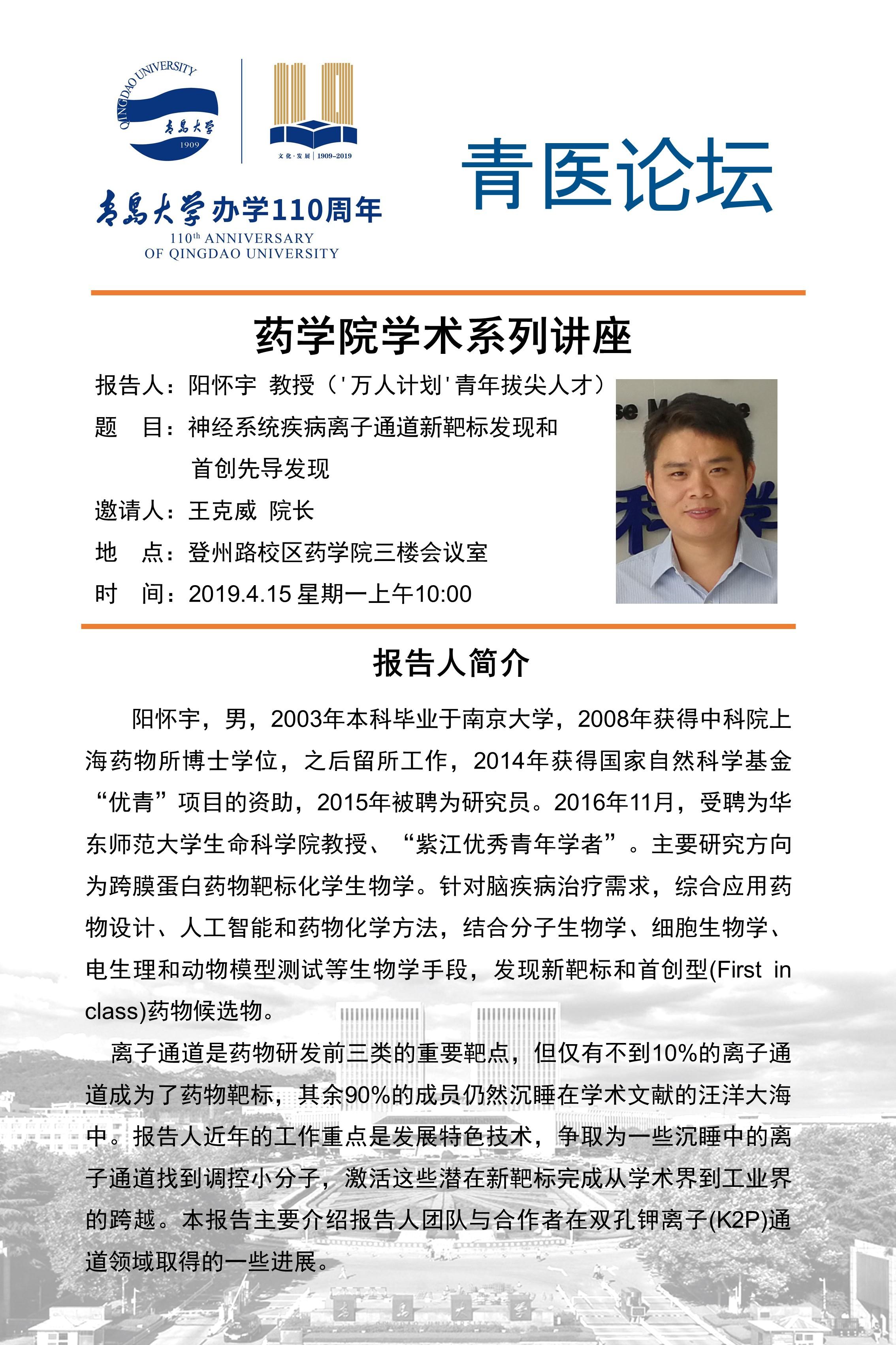 黑料正能量 学术系列讲座预告--阳怀宇 教授