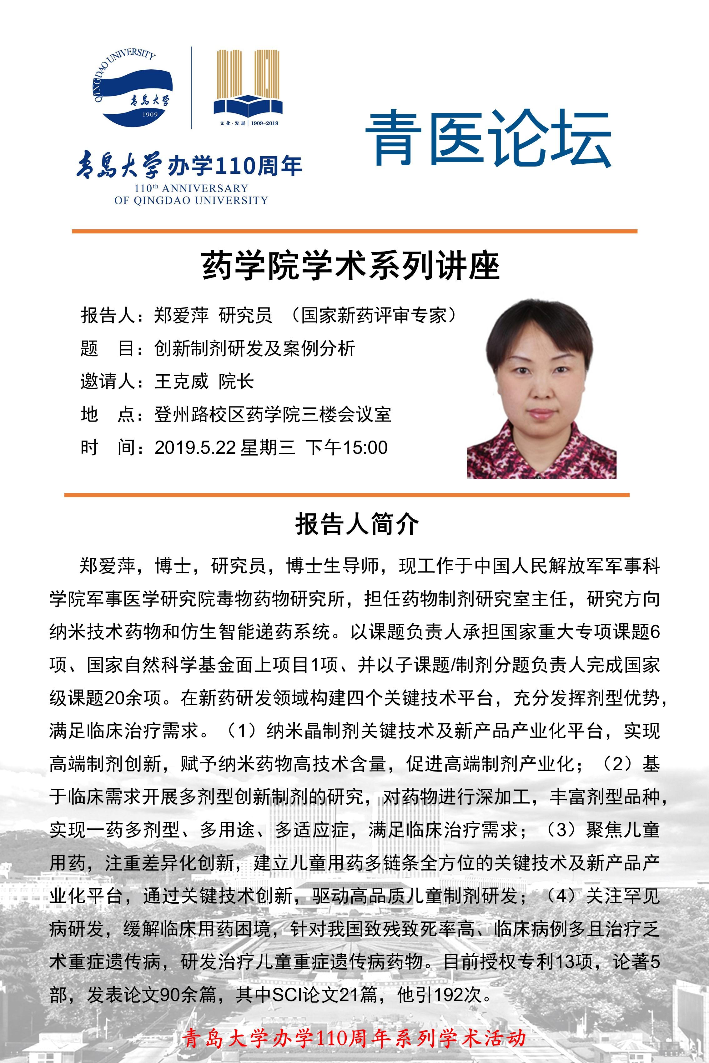 黑料正能量 学术系列讲座预告--郑爱萍 教授