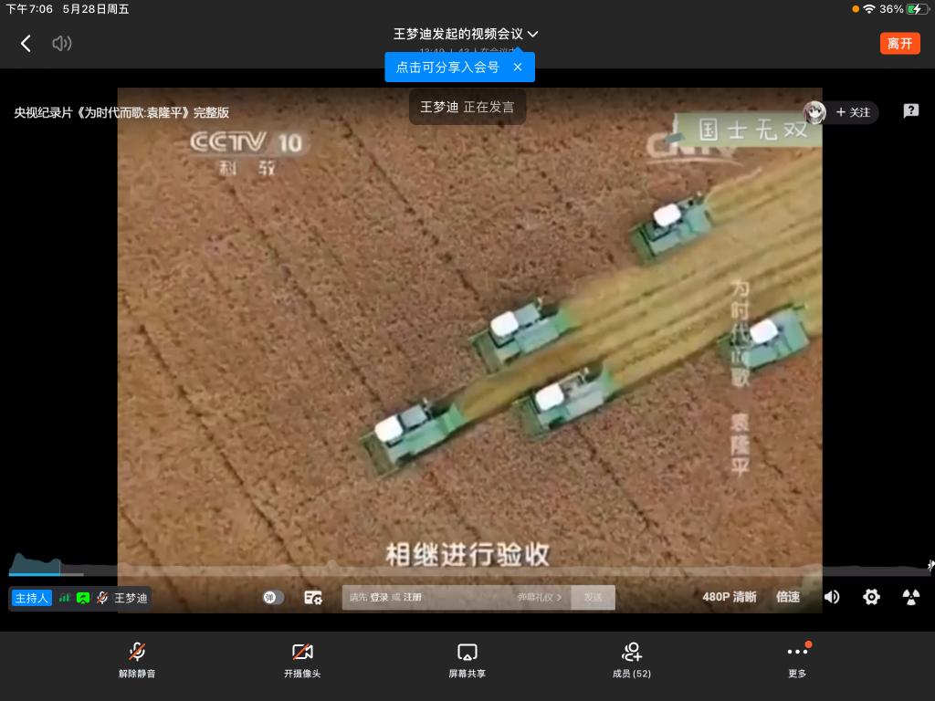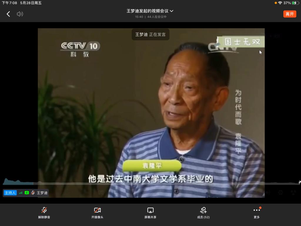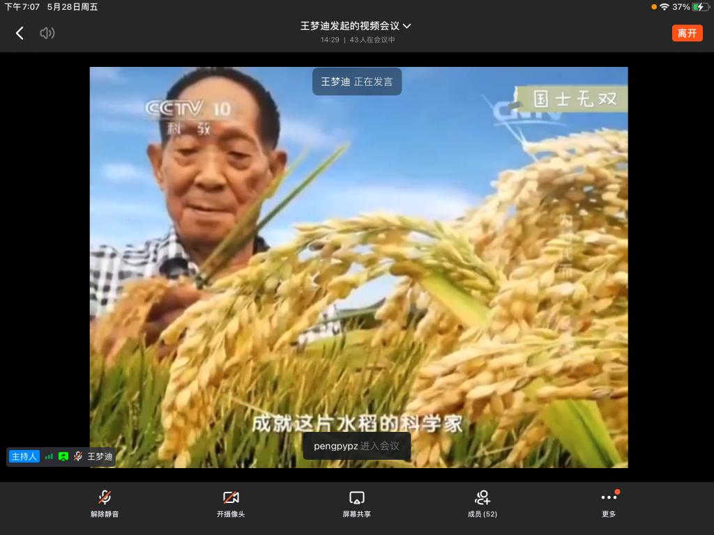 学生党支部全体党员在线上观看了央视纪录片《为时代而歌:袁隆平》,再次回顾袁老一生的耕耘,深切缅怀袁隆平,向“国之脊梁”致敬。