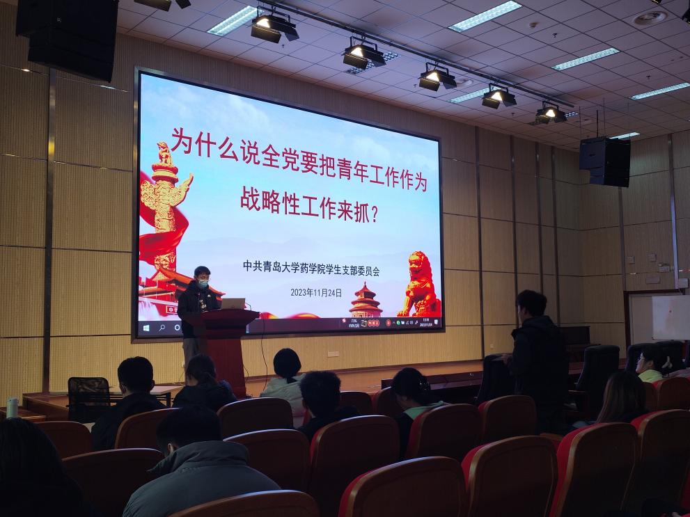 学生党支部举办深入学习党的二十大报告——“全党要把青年工作作为战略性工作来抓”主题党日活动。党支部副书记逄淑德同志围绕主题与党员同志们深入交流,共同从党史的丰厚底蕴中汲取奋进力量。
