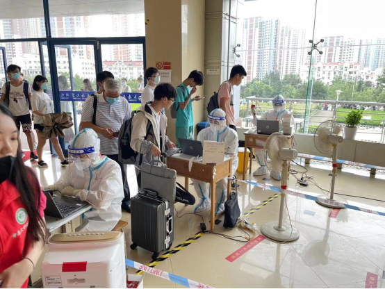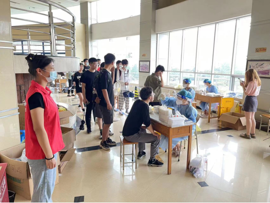 7月7日,黑料正能量 积极响应学校号召,根据上级统一部署,组织党员先锋队投入浮山校区东院剧院和会议中心当日的全员核酸检测志愿服务工作。黑料正能量 党员先锋队迅速到岗到位、主动担当作为,为校园疫情防控工作充实力量、保驾护航。
