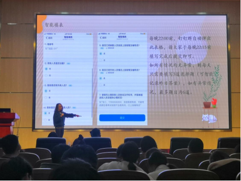 李在宝在致辞中向表示,心理健康教育工作是学校和学院都非常重视的一项工作,希望全体学生党员和学生骨干能够珍惜学习机会,通过系统、专业的心理培训,掌握基本的心理知识和技能,提升“自助”和“助人”的能力,既自我成长,又恩泽同窗。随后,新阳光心理研究所讲师王艳丽同学们介绍了心理信息员的工作任务和工作流程,表示当日大家即进入系统开始工作运行。