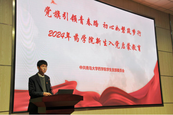 于浩园医学教育综合楼学术报告厅举办“党旗引领青春路,初心如磐筑梦行”新生入党启蒙教育专题活动。学院党委书记李在宝、学生党支部书记仇启荣以及全体2024级新生参加活动,活动由辅导员杨浩主持。