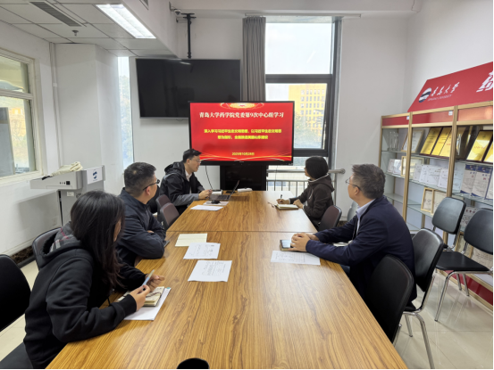 党委中心组在浩园医学教育综合楼B614会议室举行2025年度第九次理论学习会。学院党委书记李在宝主持学习会并讲话,中心组成员孙勇、雷舒涵、曹洁、高建军等参加学习。